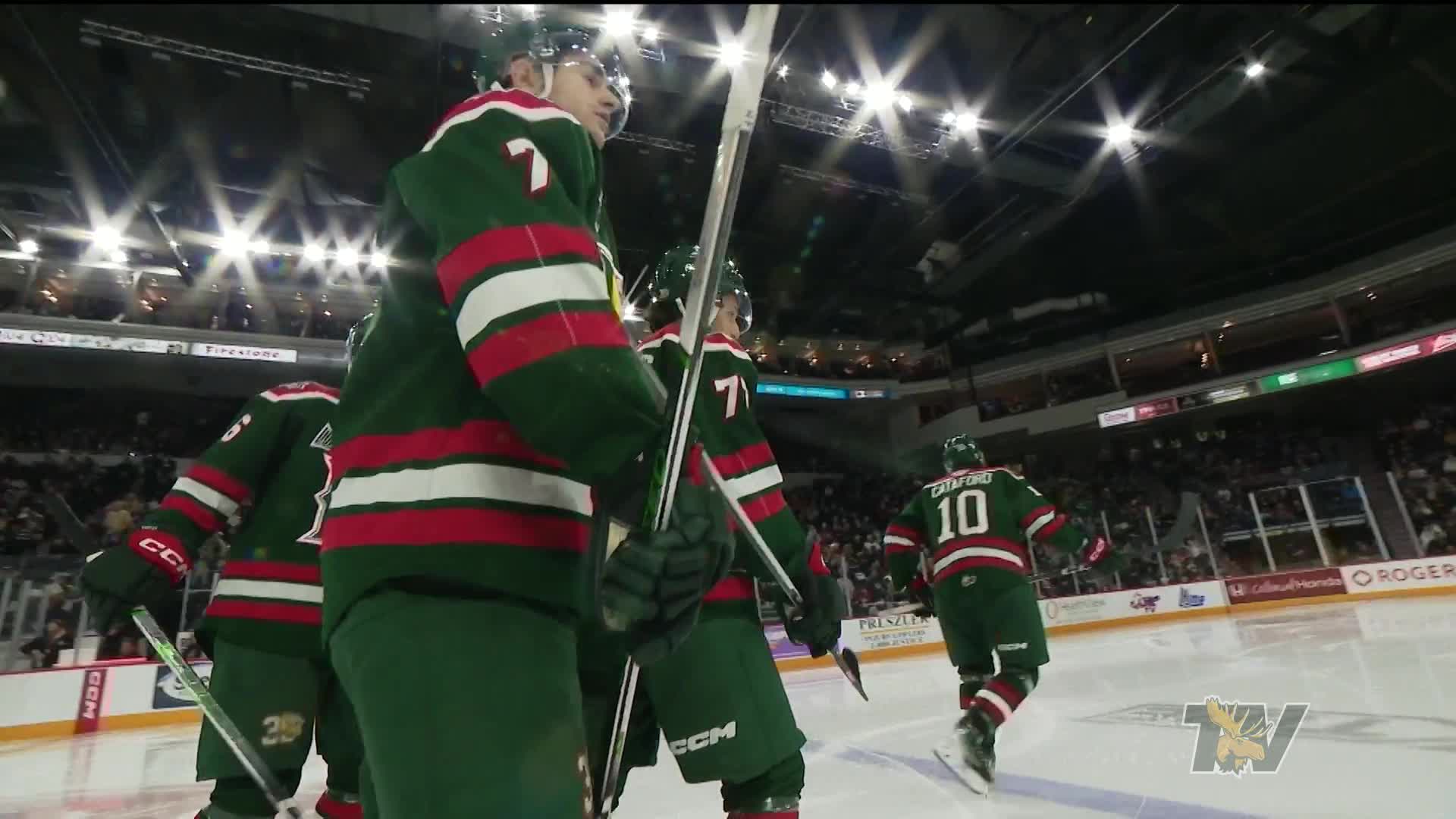 Three home wins this week against Maritime opposition saw the Halifax Mooseheads climb back into the top five. Alexandre Doucet (DET) had a hat-trick Thursday in a 5-2 win over Saint John before Josh Lawrence had five points (2G, 3A) Saturday in a 6-1 victory over Cape Breton. On Sunday, Mathieu Cataford had two goals as they beat Acadie-Bathurst 6-2. The Mooseheads’ 93 points are tied for the most in the QMJHL.