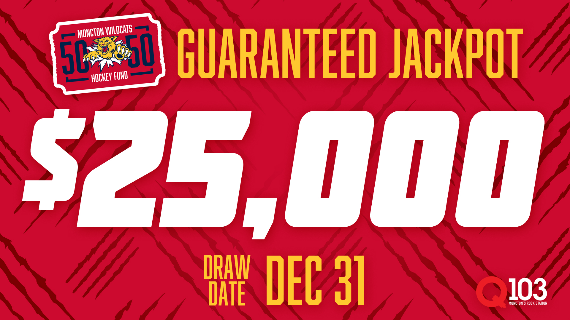 - The 50/50 raffle has a $7,500 Jackpot guarantee. Don’t forget to buy your raffle tickets online now or at the game. We accept cash, debit, Visa or Mastercard at the arena.