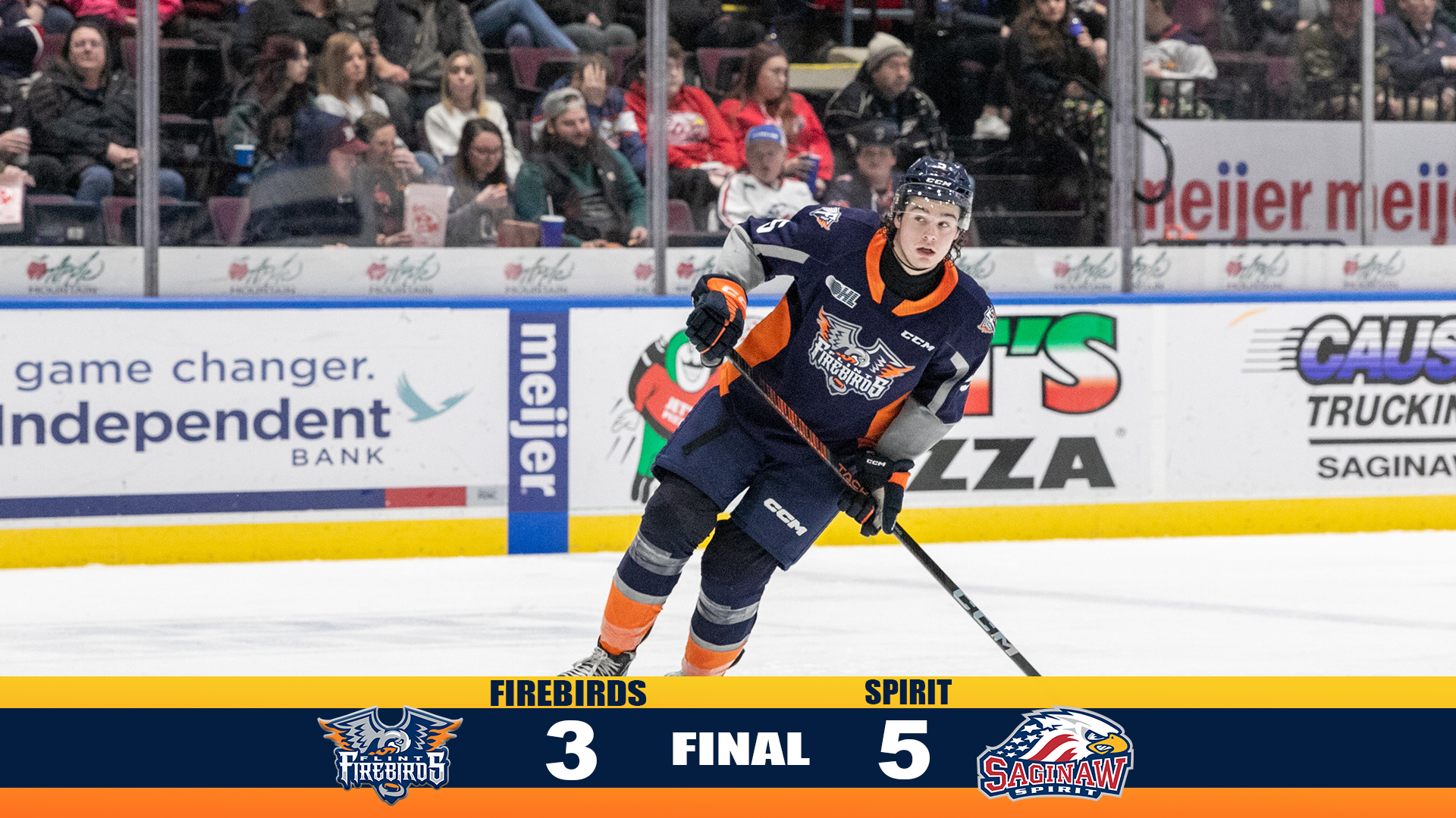 Firebirds Allow Three Late Goals, Fall in Saginaw, 5-3