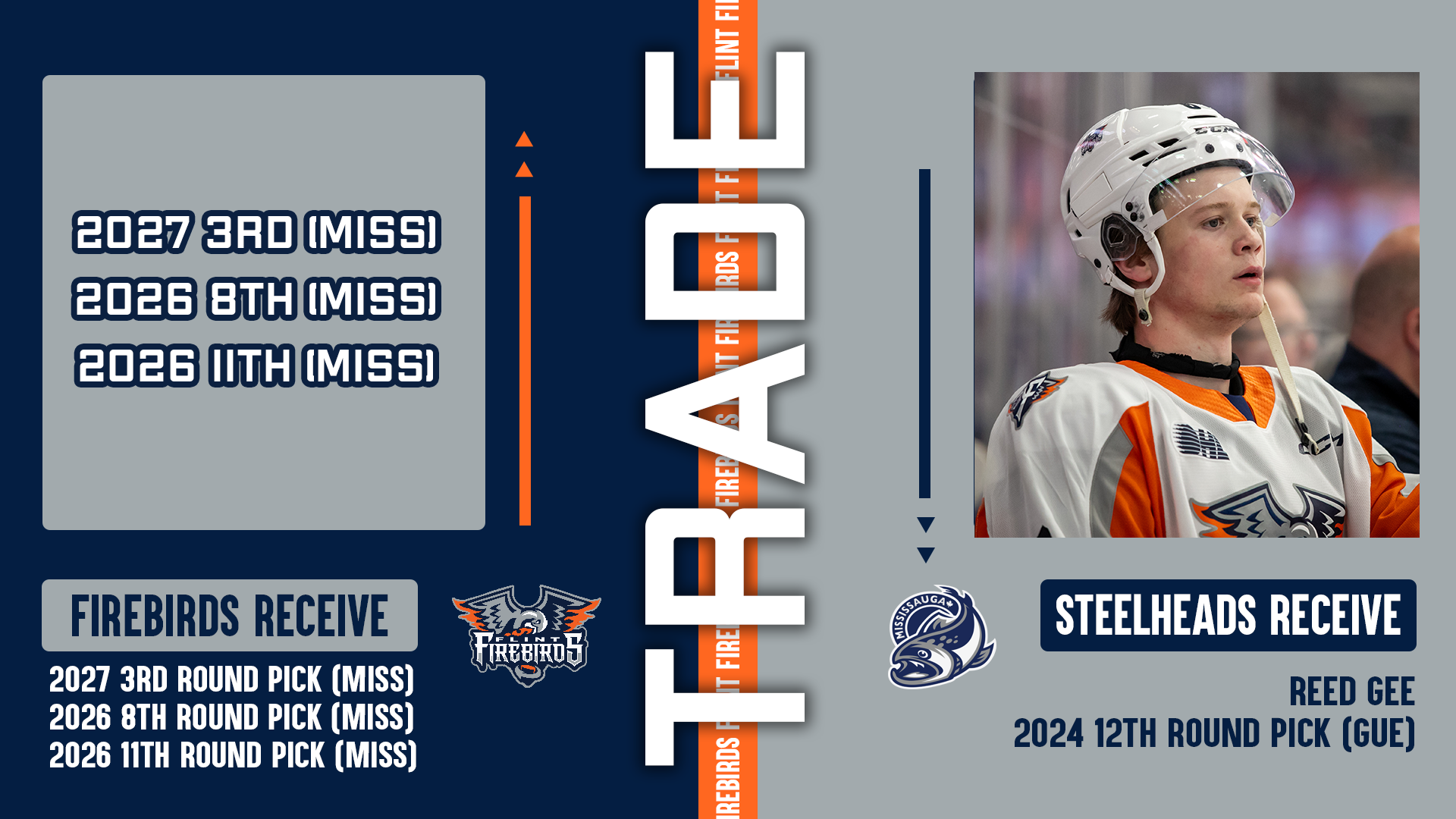 Firebirds Acquire Three Draft Picks From Mississauga for Reed Gee and a Pick