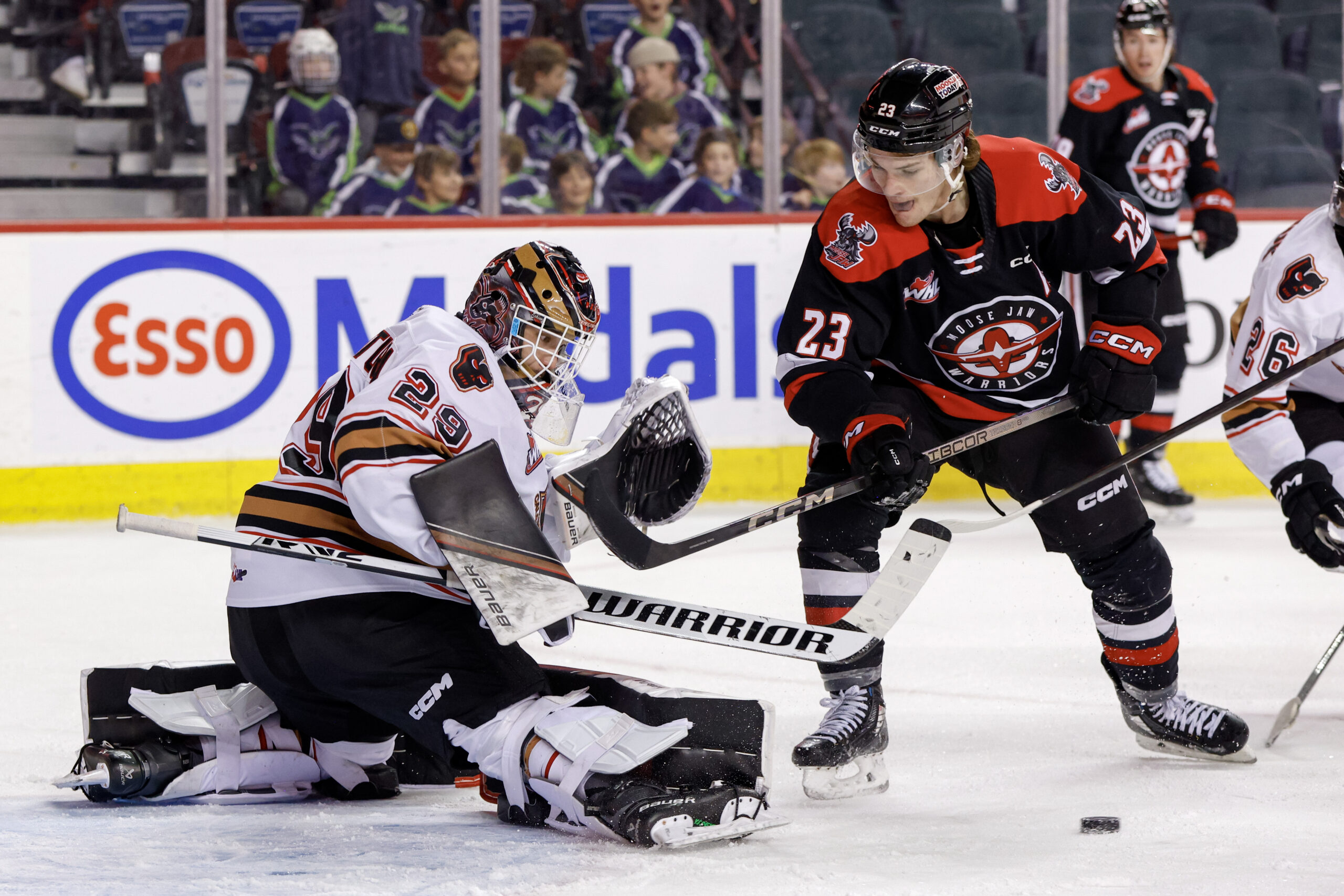Halbgewachs is currently playing with the Pat Canadians of the SMAAAHL, while Bell travelled throughout Thursday and Friday to make it Moose Jaw where he made his Warriors debut Friday night against Red Deer.